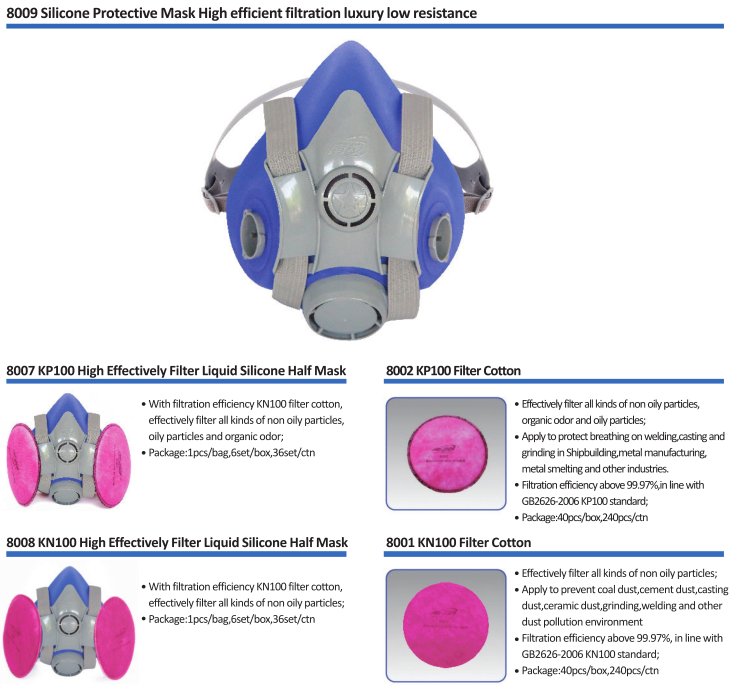 8007 KP100 High Effectively Filter,Liquid Silicone Half Mask
