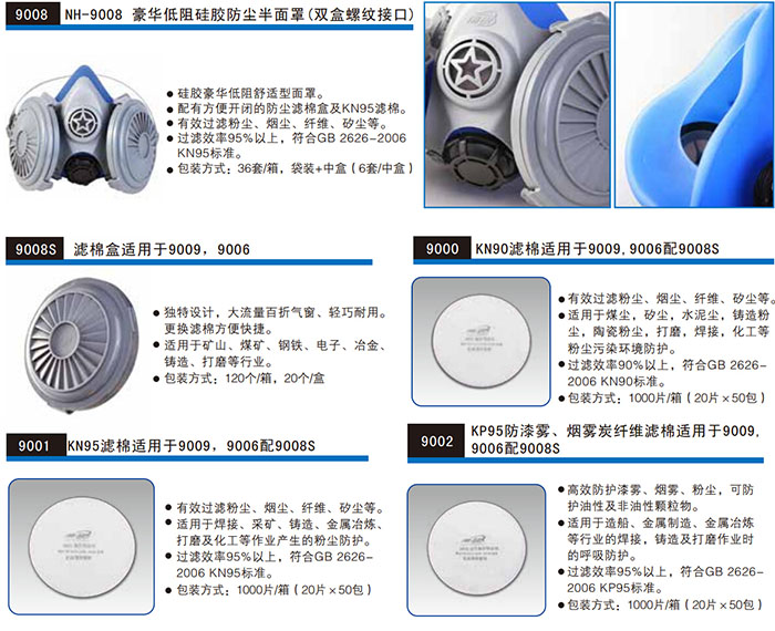 8.符合GB 2626-2006 標準,取得中國LA認證,QS認證。